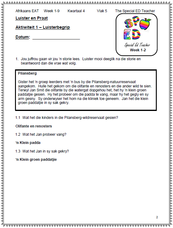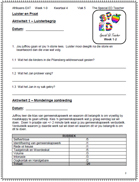 Afrikaans Eerste Addisionele Taal Grade 5 Term 4 Workbook