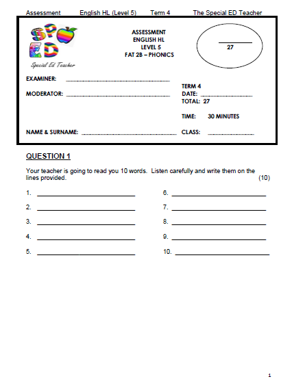 English Home Language Assessment Grade 5 Term 3